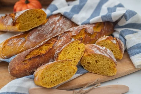Bagietki dyniowe to przepyszny i naprawdę wyjątkowy wypiek. Pieczywo idealnie komponuje się zarówno ze słodkimi, jak i wytrawnymi dodatkami. Bagietki mają chrupiącą skórkę i delikatne, lekko ciągnące się wnętrze. Jesienią stworzą idealny dodatek do zup i rozgrzewających smarowideł.