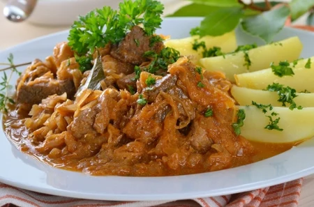 Rozgrzewający gulasz to klasyk kuchni węgierskiej. Sos z kapustą kiszoną robi tu robotę