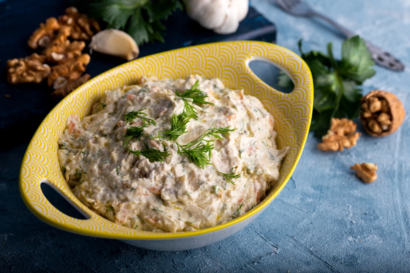 Orzechy włoskie możemy wykorzystać do przygotowania pewnej wariacji na temat sałatki jarzynowej. To idealne danie nie tylko na święta - przepis można powtórzyć również na sylwestra, bądź inną okazję. Rodzinie z pewnością zasmakuje.