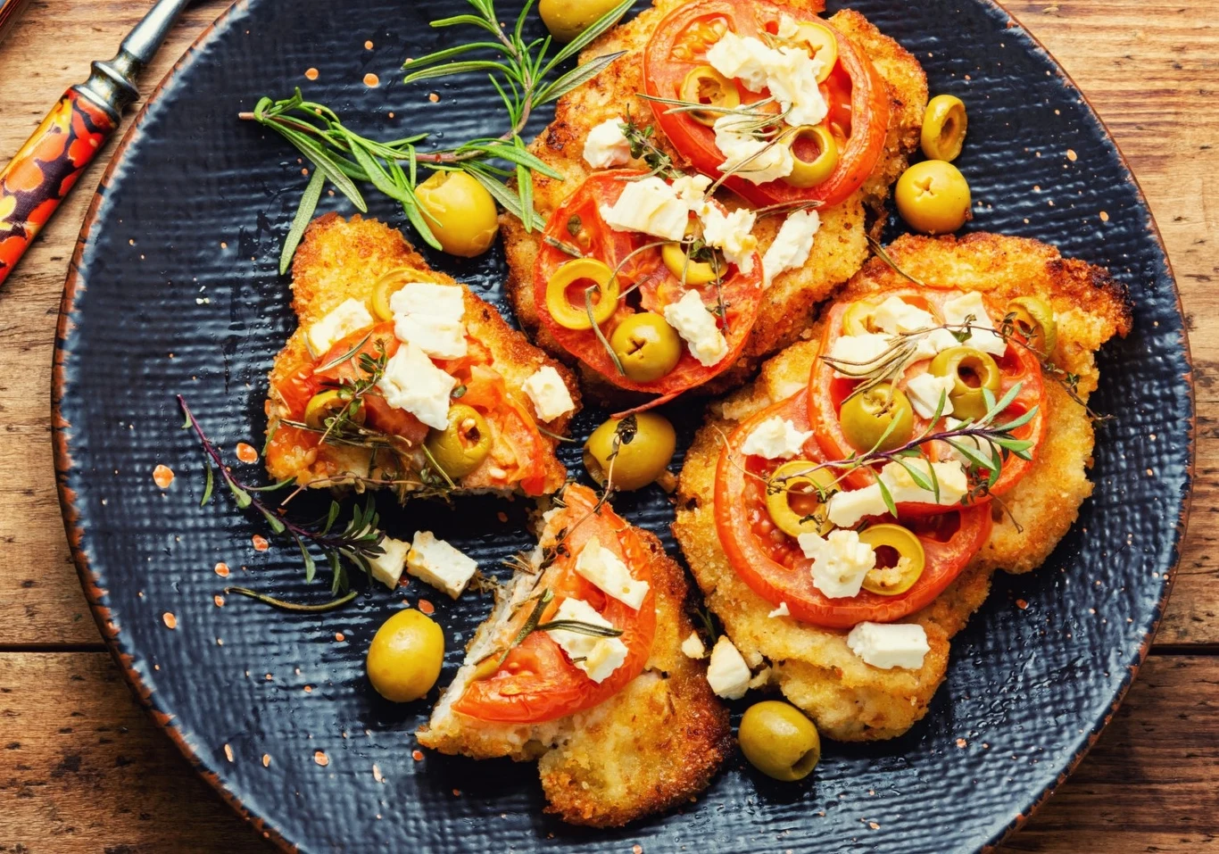 Schabowe po grecku to nic innego jak klasycznie usmażone kotlety bez kości, zapieczone z dodatkiem pomidora i intensywnego w smaku sera feta. Nie można zapomnieć także o przyprawach - to rozmaryn i tymianek nadają temu daniu charakter.
