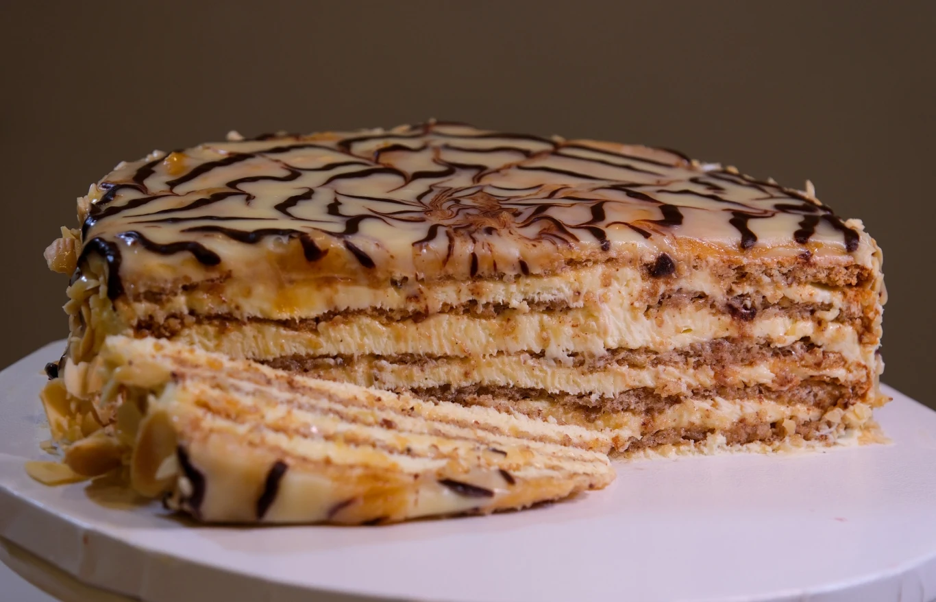 Tort Esterhazy to jeden z najsłynniejszych węgierskich deserów, którego historia sięga XIX wieku. Powstał w Budapeszcie i został nazwany na cześć arystokratycznego rodu Esterházy, znanego z mecenatu nad sztuką i kuchnią. To ciasto od samego początku uchodziło za luksusowy wypiek, serwowany w eleganckich kawiarniach monarchii austro-węgierskiej.
