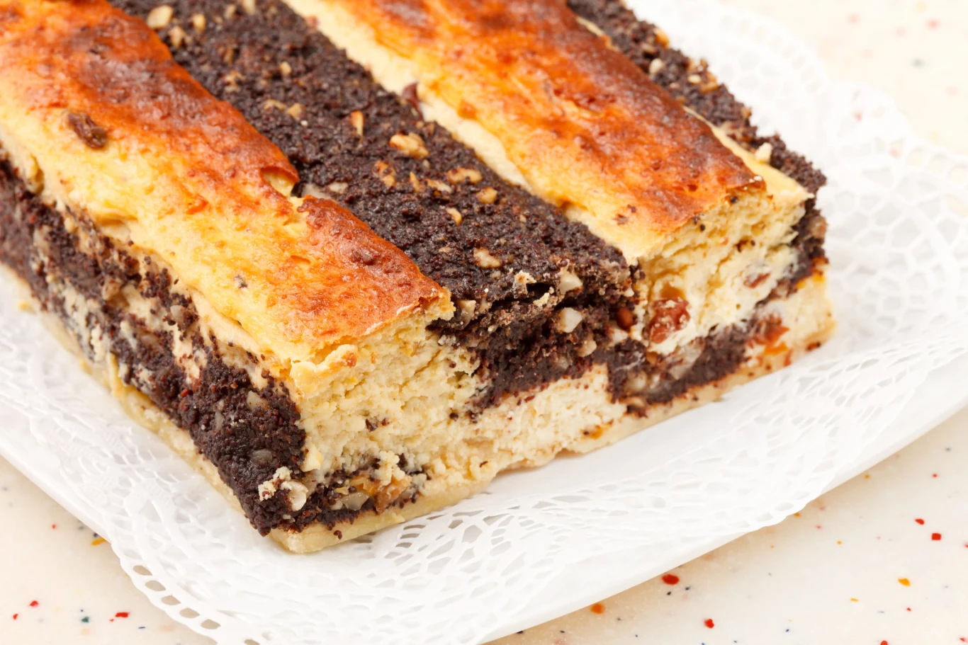Seromakowiec to duet, który nigdy nie zawodzi. Kremowa masa serowa rewelacyjnie łączy się z wilgotnym makiem wzbogaconym rodzynkami i orzechami, a spód z kruchego ciasta tworzy świetną bazę. Wzór szachownicy sprawia, że ciasto nie tylko smakuje, ale i wygląda zjawiskowo.