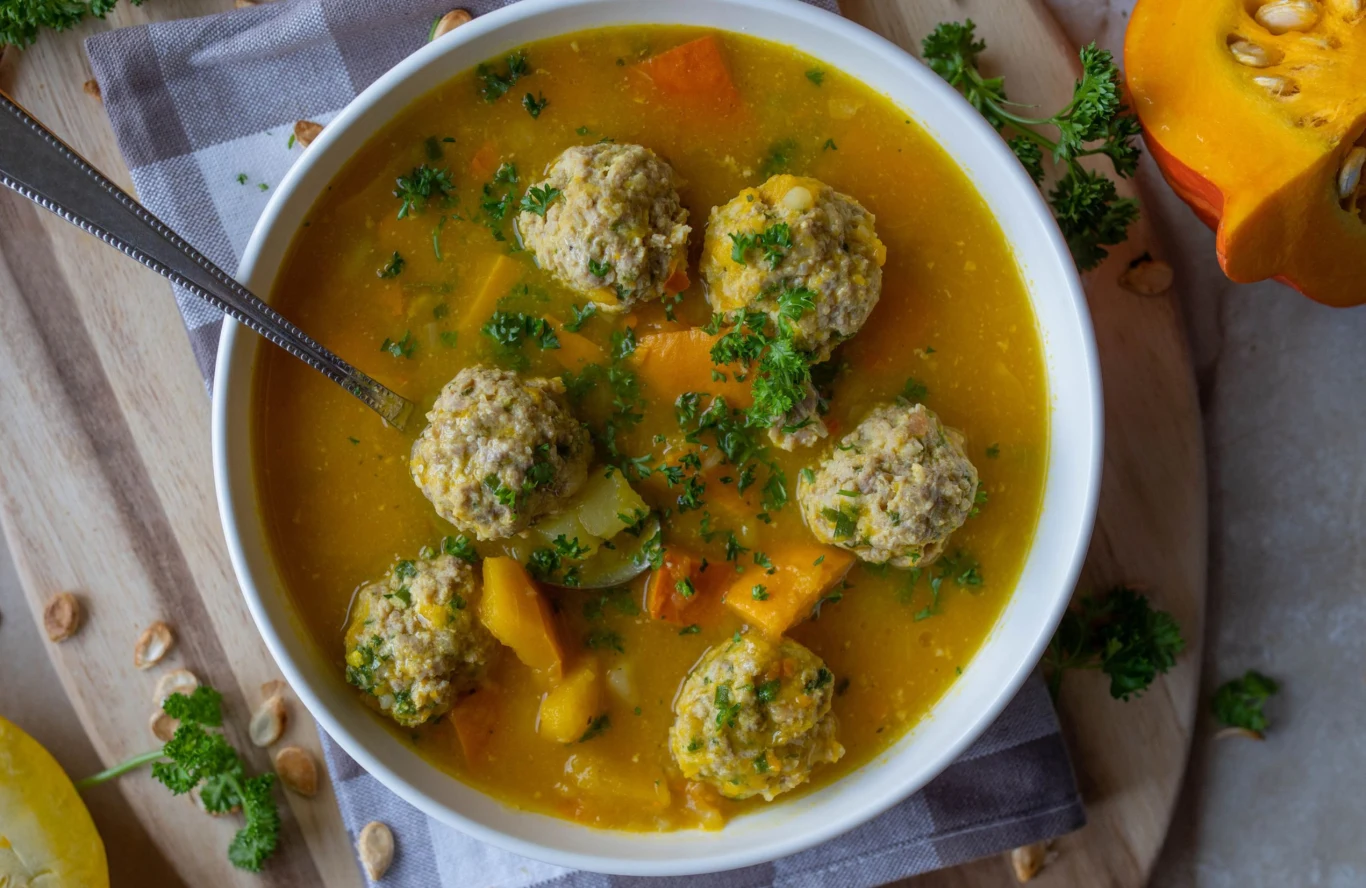 Zupa dyniowa z pulpecikami to sycąca potrawa, która może z powodzeniem pełnić nie tylko rolę pierwszego dania, ale także całego obiadu. Dynia to warzywo, które charakteryzuje się delikatnie słodkim miąższem, niezwykle mięsistym i gęstym, który idealnie wpasowuje się w charakter tej zupy. Świetnie komponuje się z wyrazistymi, mięsnymi klopsikami. Taki posiłek zawiera sporo błonnika oraz białka, dzięki czemu nie pomyślisz o podjadaniu, aż do kolacji.