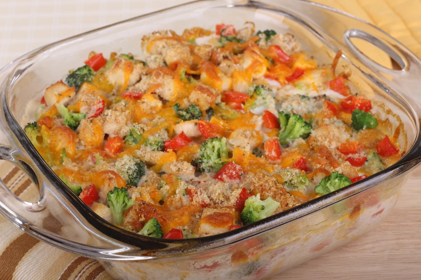 Makaronowa zapiekanka z kurczakiem i warzywami to kremowe, sycące danie, które łączy w sobie komfort domowej kuchni i kolorową świeżość składników. Soczyste kawałki mięsa, chrupiące warzywa i złocista, zapieczona serowa warstwa tworzą apetyczną kompozycję smaków. Takie danie idealnie sprawdzi się na szybki obiad na piątek dla całej rodziny. Na pewno nie obędzie się bez pytań o dokładkę.