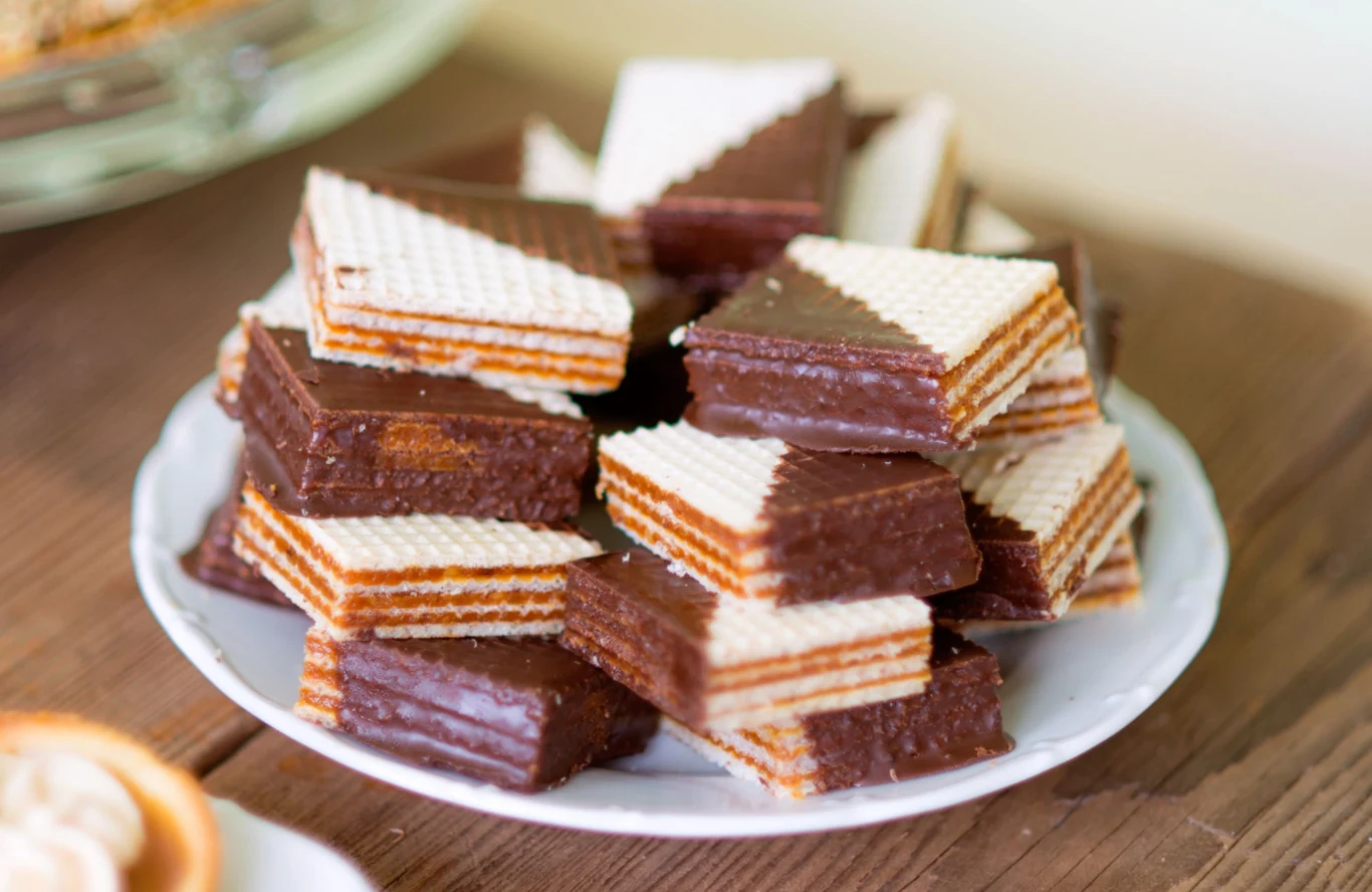 - 150 g suchych wafli lekkich kwadratowych,
