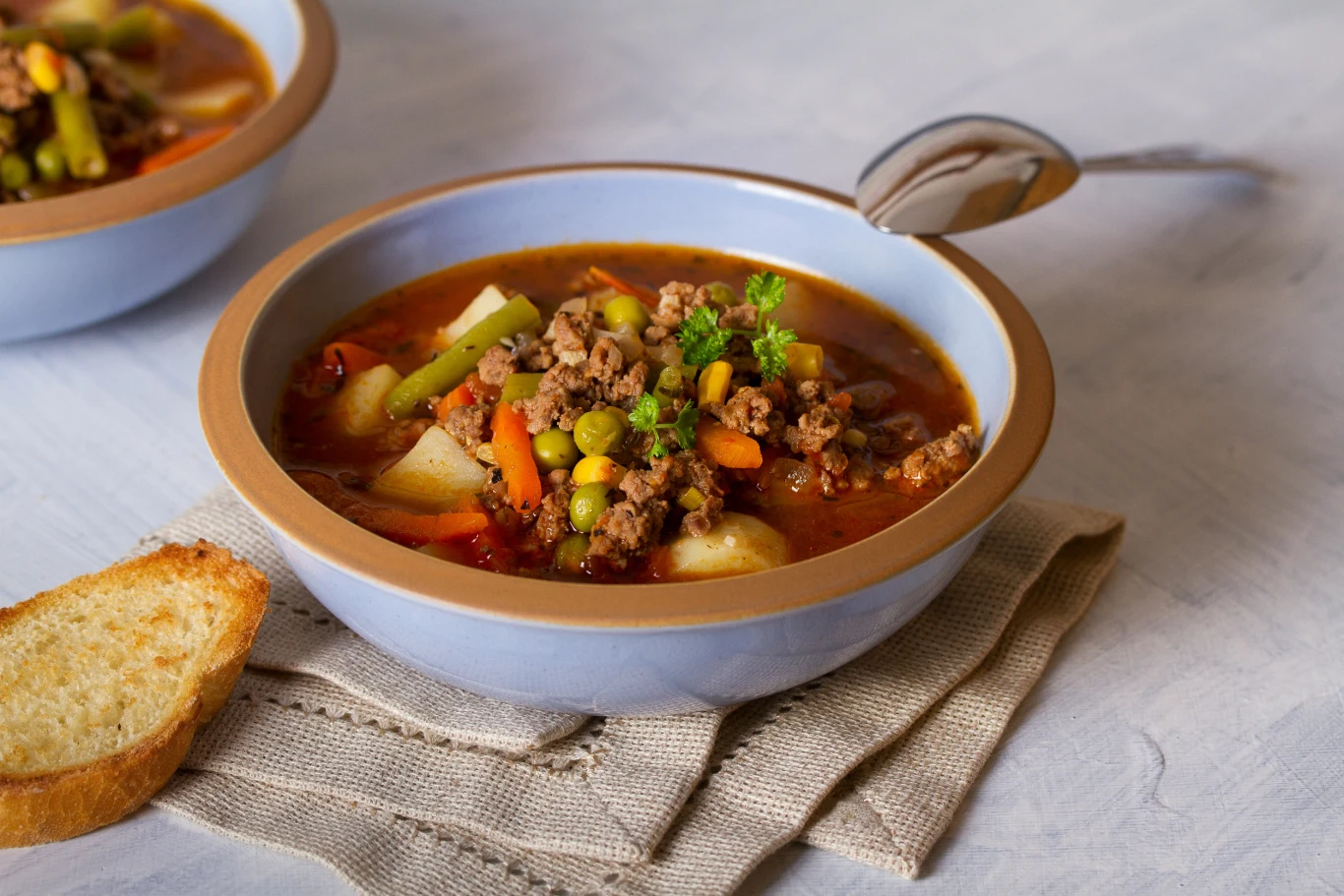 Szybka zupa na obiad bazuje na mięsie mielonym i warzywach. Nie brakuje tu cebuli, marchwi, papryki, ziemniaków, czosnku, kukurydzy i groszku. Choć potrawę przyrządza się łatwo i raczej szybko, to zawiera w sobie sporą dawkę składników odżywczych. W zupełności wystarczy za cały obiad, bo ukryte w niej białko i błonnik pokarmowy zapewnią sytość na długo. Pamiętaj też, że jeśli nie masz dostępu do świeżych warzyw, możesz użyć mrożonych gotowych mieszanek. Zupa wychodzi aromatyczna, pyszna i dobrze doprawiona. Nic nie stoi na przeszkodzie, żebyś przygotował duży garnek na dwa dni - kolejny obiad będzie jeszcze bardziej wyrazisty w smaku.
