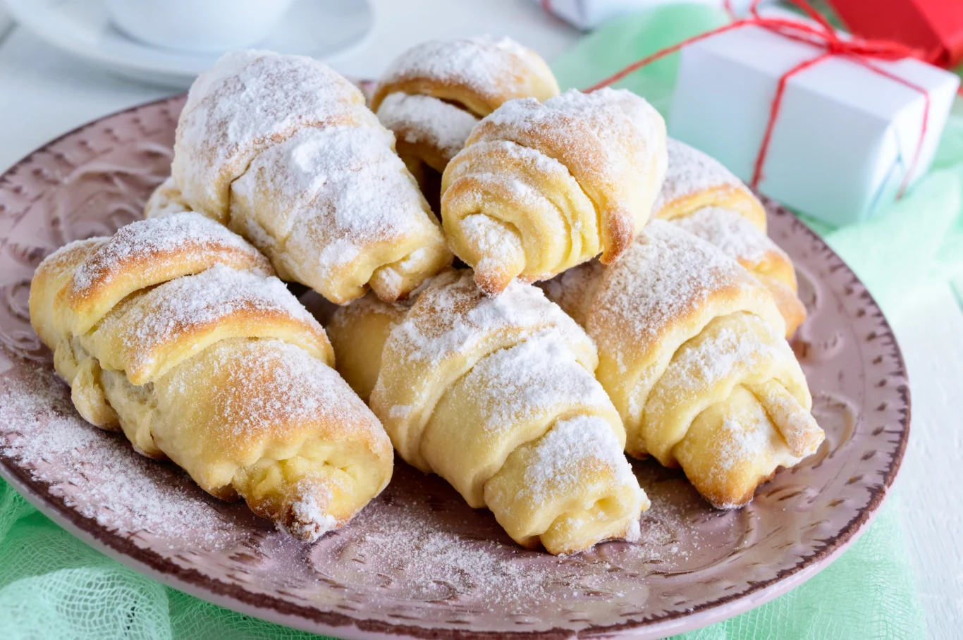 Po lekkim przestudzeniu posyp rogaliki obficie cukrem pudrem.