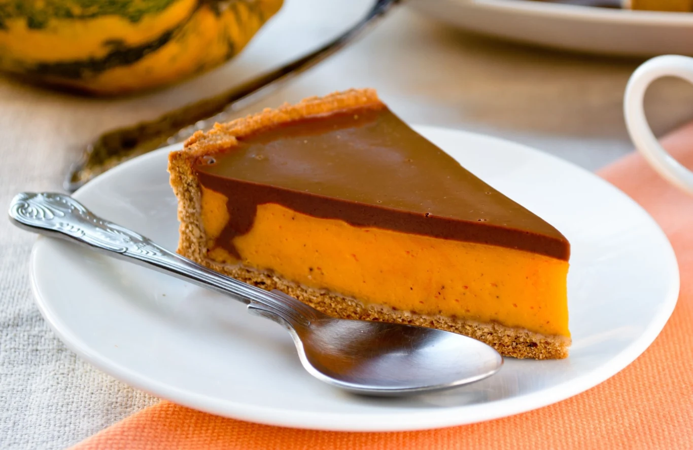Tarta dyniowa to wyśmienite połączenie smaków z nutą czekolady, pomarańczy i korzennych przypraw. Kruchy spód na bazie orzechów włoskich i masła pysznie komponuje się z kremową masą dyniową. Całość dopełnia aksamitna polewa z czekolady, która dodaje deserowi wyrazistości i zapewnia elegancki wygląd. Każdy kęs tej tarty to prawdziwa uczta smaków, choć jej wykonanie jest zaskakująco proste. Ciasto będzie doskonałe na rodzinne spotkania, świąteczne przyjęcia czy popołudniowy deser przy filiżance aromatycznej kawy.