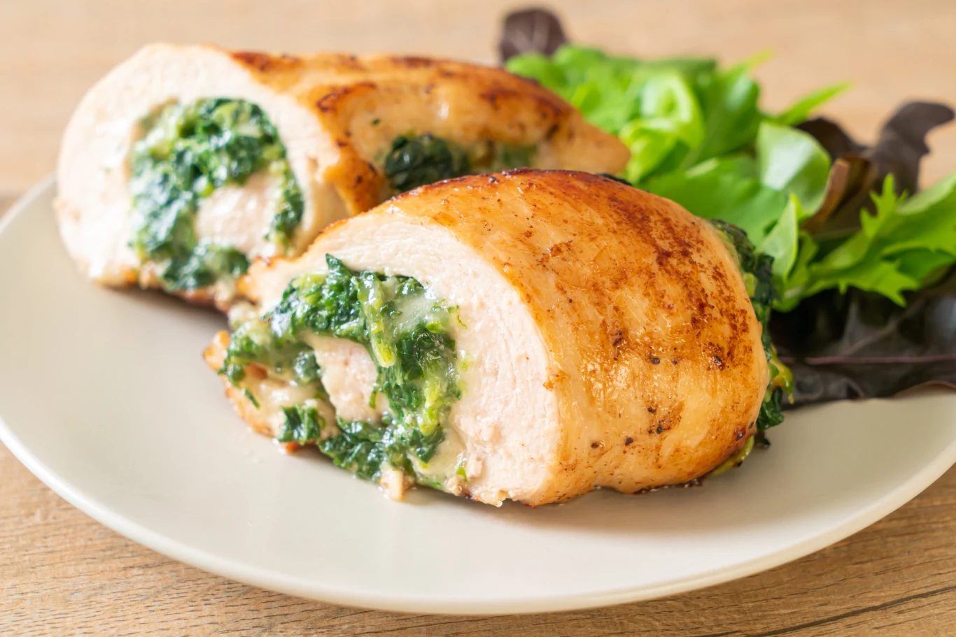 Filet z serem i szpinakiem to pyszne roladki z kurczaka wypełnione kremowym farszem szpinakowym. Całość jest pełna smaku, wyrazistości, ale także składników odżywczych. Kurczak jest bogatym źródłem białka, a szpinak, a szpinak witamin, minerałów, błonnika i przeciwutleniaczy, dzięki czemu danie to jest nie tylko bardzo smaczne, ale i zdrowe. Świetnie sprawdzi się na rodzinny posiłek na co dzień, jak i specjalne okazje.