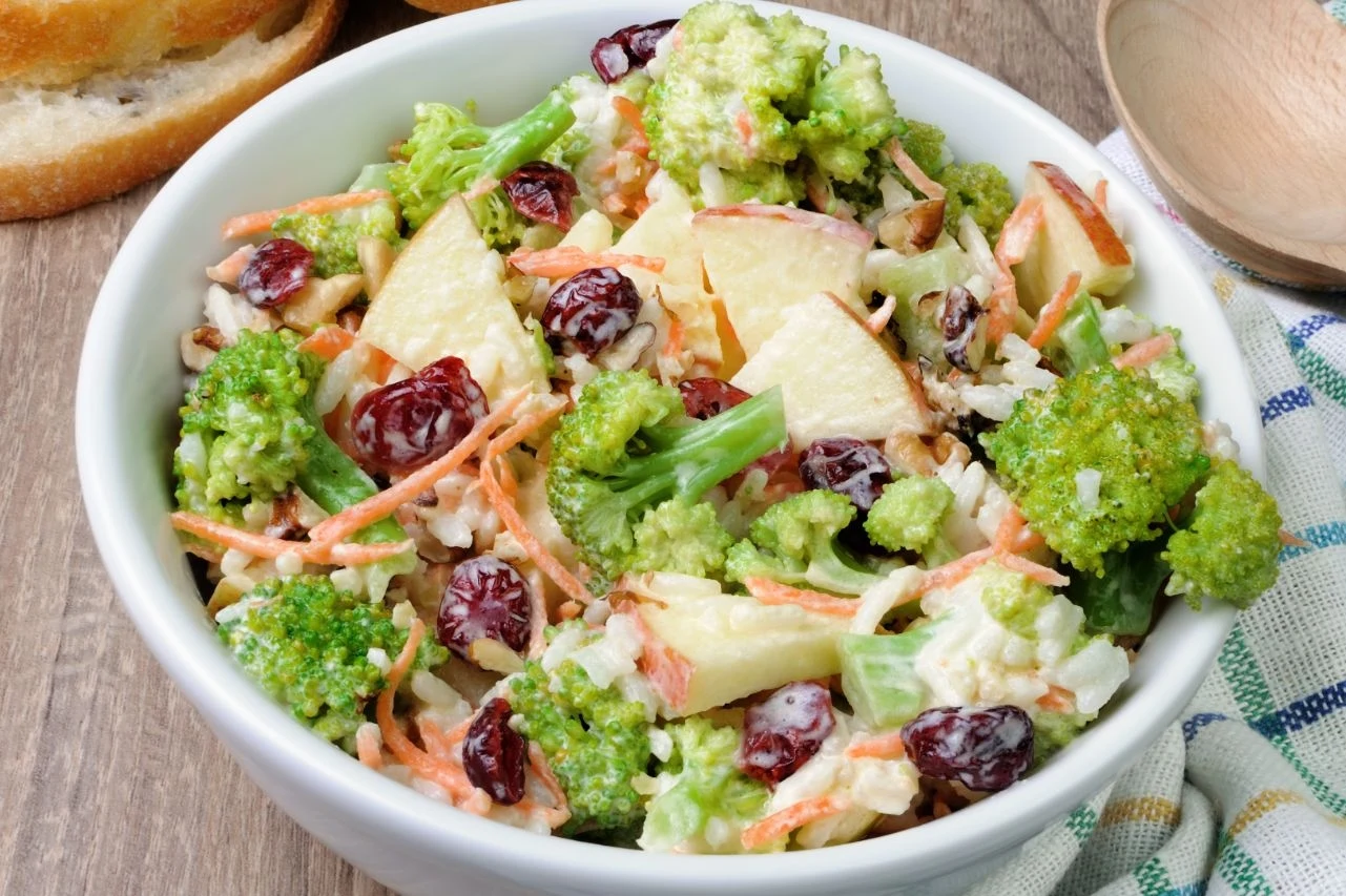 Sałatka brokułowa to połączenie pysznych smaków i kremowej konsystencji sosu. Delikatne brokuły idealnie komponują się z lekko kwaskowatymi, słodkimi jabłkami i marchewką. Dodatek żurawiny przyjemnie przełamuje smak dania. Ta sałatka to także prawdziwa bomba witaminowa, a zamieniając majonez w całości na jogurt grecki, stanie się świetną propozycją dla osób na diecie niskokalorycznej. Potrafi też odczarować brokuły w oczach nawet najbardziej zagorzałego przeciwnika tego wyjątkowo zdrowego warzywa.