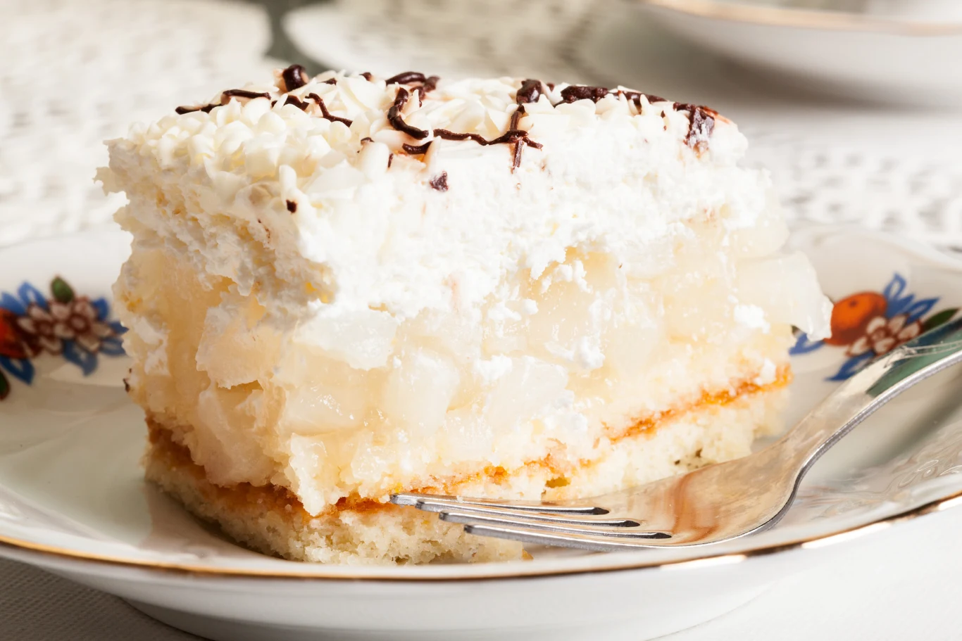 Ciasto Śnieżna Góra idealnie łączy w sobie puszysty biszkopt, słodko-kwaśne jabłka i pyszną, kremową warstwę bitej śmietany. Doskonale sprawdzi się do filiżanki kawy lub herbaty na wszystkie rodzinne uroczystości. Jest lekkie, rozpływa się w ustach, oraz zachwyca delikatnością. Na pewno trudno będzie ci odmówić sobie sięgnięcia po dokładkę.