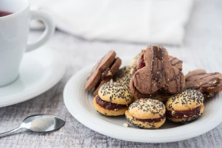 Te biszkoptowe ciasteczka zachwycają kruchością, a słodycz marmolady idealnie współgra z makiem. Świetnie pasują do popołudniowej kawy, dlatego warto od razu zrobić nieco większy ich zapas.
