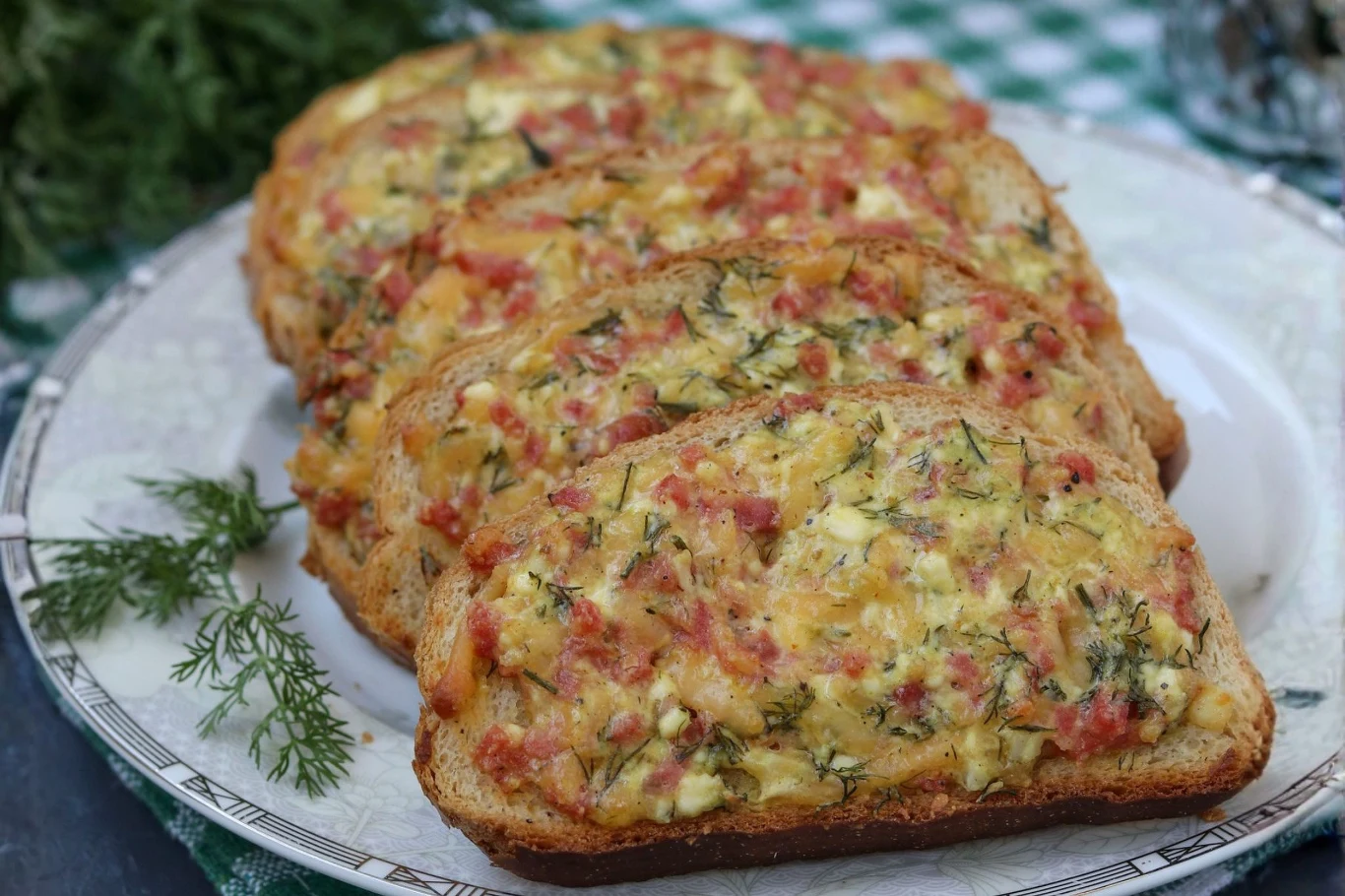 - Wstaw kromki do piekarnika rozgrzanego do 200 st. Celsjusza i piecz przez 8-12 minut, do rozpuszczenia sera i przyrumienienia pieczywa.