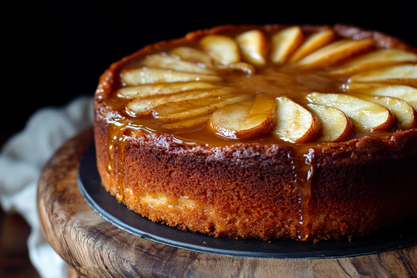 Wyłóż gruszkami wierzch schłodzonego sernika. Oblej karmelem z patelni.