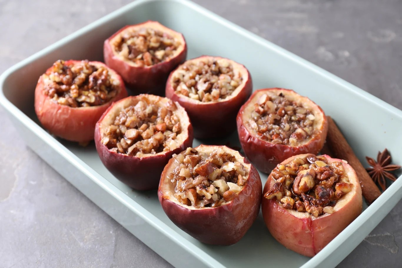 Pieczone jabłka z cynamonem i orzechami to idealny jesienny deser. Rozpływają się w ustach i przepełnione są wyjątkowym aromatem, który rozgrzewa i umila pochmurny dzień. To o wiele lepszy i prostszy przepis na podanie tych owoców niż tradycyjna szarlotka. Koniecznie wypróbuj i zajadaj do następnej popołudniowej kawy.