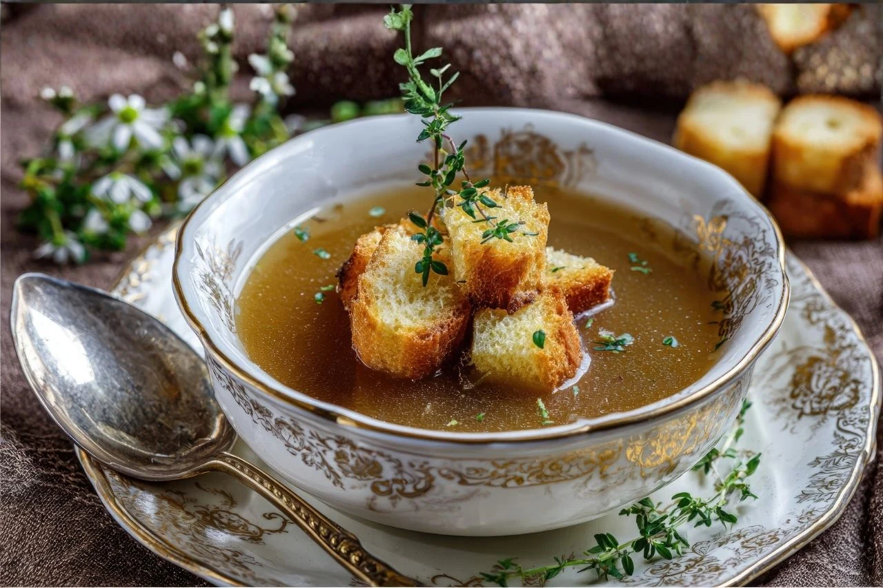 Przepis na zupę kminkową można znaleźć w krakowskich książkach kucharskich z XIX wieku, gdzie pojawia się obok rosołów, polewek i prostych zup jarskich. Była codziennym daniem, tanim, ale opartym na wysokiej jakości rosole. To właśnie klarowny bulion wydobywał z kminku cały aromat i sprawiał, że zupa była jednocześnie lekka i pełna smaku.