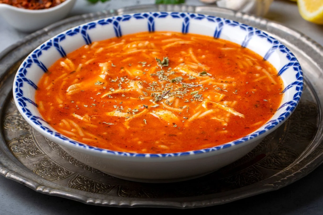 Zupa pomidorowa po turecku jest wyjątkowo prosta i szybka, zupełnie inna od naszych klasycznych pomidorówek. Bazuje na tartych pomidorach i masie aromatycznych przypraw. Całość jest przyjemnie rozgrzewająca i sycąca, a tarty ser i chili dodają nuty wyrazistości i pikanterii. Świetnie pasuje do świeżych i gorących grzanek z białego pieczywa. Dużą zaletą jest możliwość dostosowania konsystencji do indywidualnych preferencji - możesz zaserwować zarówno krem, jak i rzadszy bulion pomidorowy z pływającymi wewnątrz kawałkami warzyw.