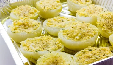 Zapiekane cebule w panierce. To pyszna przekąska lub dodatek do mięsnego obiadu