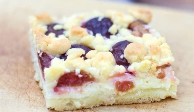 Kremowy i soczysty deser. Upiecz prosty sernik ze śliwkami i kruszonką