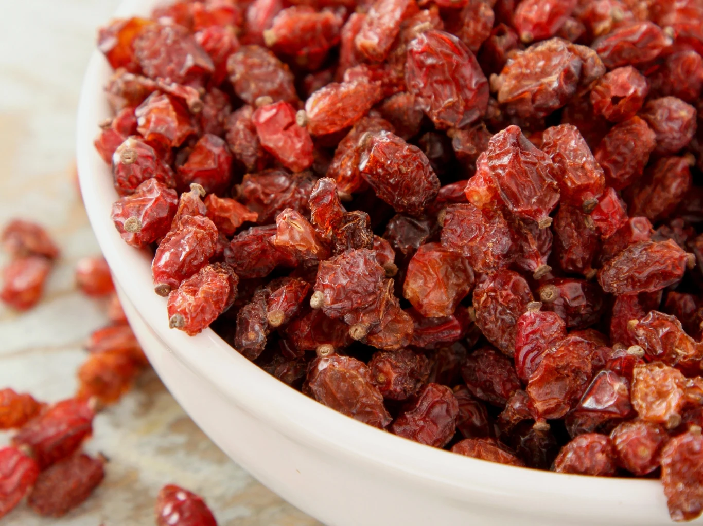 Berberys zwyczajny (Berberis vulgaris) to kolczasty krzew od dawna obecny w Europie i Azji Zachodniej, który w Polsce rośnie zarówno dziko, jak i w formie nasadzeń ozdobnych. Jego niewielkie, intensywnie czerwone owoce dojrzewają pod koniec lata i wyróżniają się wyraźnie kwaśnym smakiem, wynikającym z wysokiej zawartości kwasów organicznych. Najczęściej wykorzystuje się je w postaci suszonej, ponieważ właśnie ta forma jest najwygodniejsza i najtrwalsza. Wyrazisty smak sprawia, że nawet mała porcja potrafi szybko zaspokoić ochotę na coś słodkiego, co w kontekście diety redukcyjnej pomaga ograniczyć sięganie po kaloryczne produkty i stabilizować sposób jedzenia w ciągu dnia.