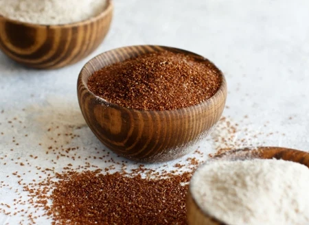 Mąka teff powstaje z całych ziaren, bez oddzielania otrębów. To produkt pełnoziarnisty z definicji, a nie efekt marketingowego nazewnictwa. Dzięki temu zachowuje naturalną strukturę i pełne spektrum składników mineralnych.