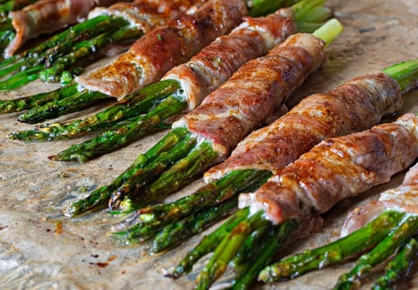 Nie wyobrażasz sobie obiadu bez mięsa? Owiń szparagi w szybkę parmeńską, szwarcwaldzką lub plastry boczku i upiecz na blasze wyłożonej papierem do pieczenia (180 stopni, ok. 12 minut). Możesz również ułożyć na szparagi kawałki ulubionego sera, np. mozzarelli lub parmezanu i dopiero zawinąć je w szynkę.