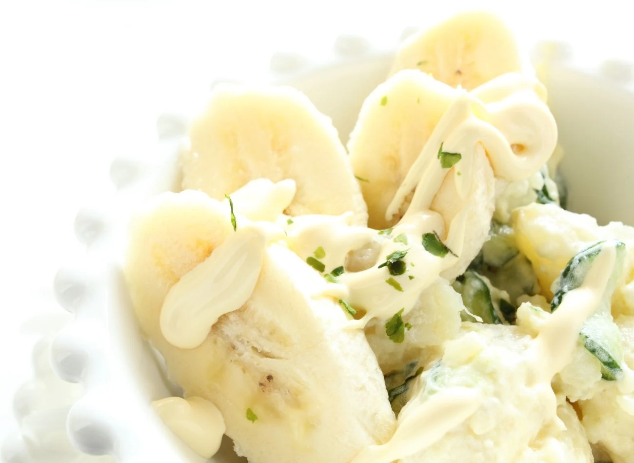 Banan to doskonała przekąska do samodzielnego zajadania w ciągu dnia. Jest on pyszny i słodki. Natomiast przez wysoką zawartość cukrów prostych, w takiej formie może wywoływać nagłe skoki i spadki energii.