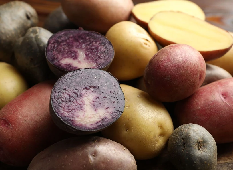 Dziś w sklepach występuje już wiele odmian ziemniaków. Jedną z bardziej nietypowych, które warto wypróbować, jest niewątpliwie ta fioletowa. Wśród fioletowych ziemniaków najpopularniejsza jest odmiana Vitelotte (warzywa zwane są też chińskimi truflami). Pochodzi z Francji, a jej podłużne bulwy charakteryzują się ciemną skórką i głęboko fioletowym miąższem, bogatym w antocyjany. Uprawiane są przede wszystkim we Francji, Chile i Peru. W Polsce ten rodzaj pojawił się dopiero w latach 70. XX wieku.