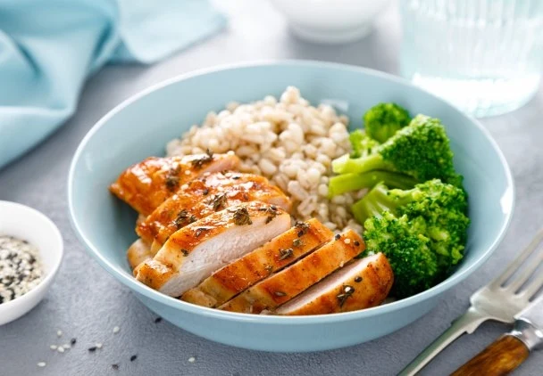 Nie wyobrażasz sobie obiadu bez mięsa? Zatem postaw na kurczaka. Pamiętaj jednak, aby nie smażyć go na głębokim tłuszczu - zdecydowanie lepszą opcją będzie jego upieczenie bądź ugotowanie go w wodzie lub na parze. Warto wprowadzić taki składnik do swojego jadłospisu, ponieważ jest on pełnowartościowym źródłem białka, które wspomaga proces odchudzania, zapewniając długotrwałe uczucie sytości i zapobiegając wahaniom cukru we krwi.