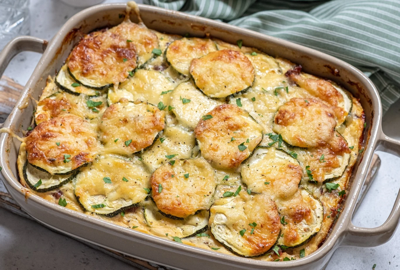 Kolejny pomysł na wykorzystanie cukinii w kuchni to przygotowanie pysznej zapiekanki. To proste domowe danie zachwyca swoją lekkością. Do jego zrobienia potrzebujesz jedynie kilku podstawowych produktów.