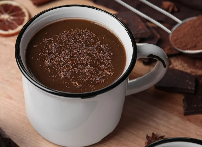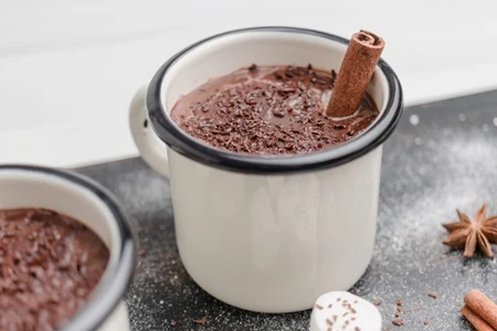 Gorącą czekoladę można zrobić na kilka sposobów, jednak, aby była najzdrowsza, najlepiej przyrządzić ją na bazie kakao i czekolady dobrej jakości. Warto zadbać o to, aby czekolada miała jak największą ilość miazgi kakaowej. Napój możesz przygotować na mleku lub roślinnym napoju. Dobra gorąca czekolada powinna być lekko słodka. Warto jednak ograniczyć spożycie białego cukru, wybierając zamienniki takie jak miód, syrop klonowy, a jeśli jesteś na diecie odchudzającej, możesz postawić na stewię, erytrytol, czy ksylitol. Doskonałym dodatkiem będą tu również korzenne przyprawy, cynamon, kardamon, czy gałka muszkatołowa.