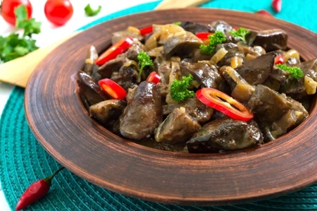 - Wątróbkę dokładnie płuczemy pod bieżącą wodą i oczyszczamy z większych przerostów. Następnie należy ją osuszyć (najlepiej za pomocą ręcznika papierowego) i pokroić w mniejsze kawałki.