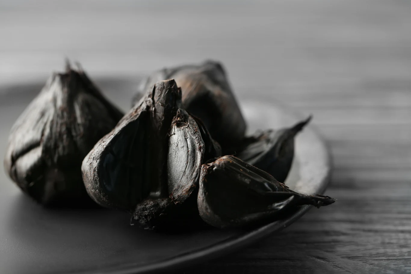 Czarny czosnek powstaje w wyniku powolnego procesu starzenia, w którym świeże główki poddawane są działaniu temperatury rzędu 60-90°C i wilgotności sięgającej 80-90%. Nie jest to fermentacja w klasycznym rozumieniu, lecz reakcje Maillarda - te same, które odpowiadają za brązowienie pieczywa czy karmelizację cebuli. W efekcie ząbki czosnku stają się miękkie, niemal kremowe, a ich smak nabiera słodko-balsamicznych nut, przypominających melasę czy ocet balsamiczny. W trakcie tego procesu czosnek traci część drażniącej allicyny, a w jej miejsce pojawiają polifenole, melanoidyny czy S-allyl-cysteina (SAC), które odpowiadają za jego prozdrowotne działanie.