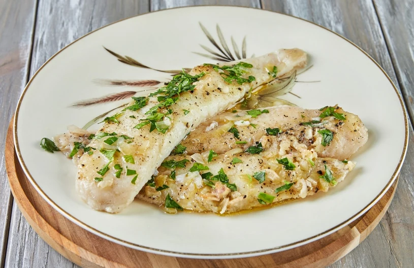 - Na osobnej patelni rozpuść odrobinę masła klarowanego, usmaż na nim rybę po kilka minut, z każdej strony.