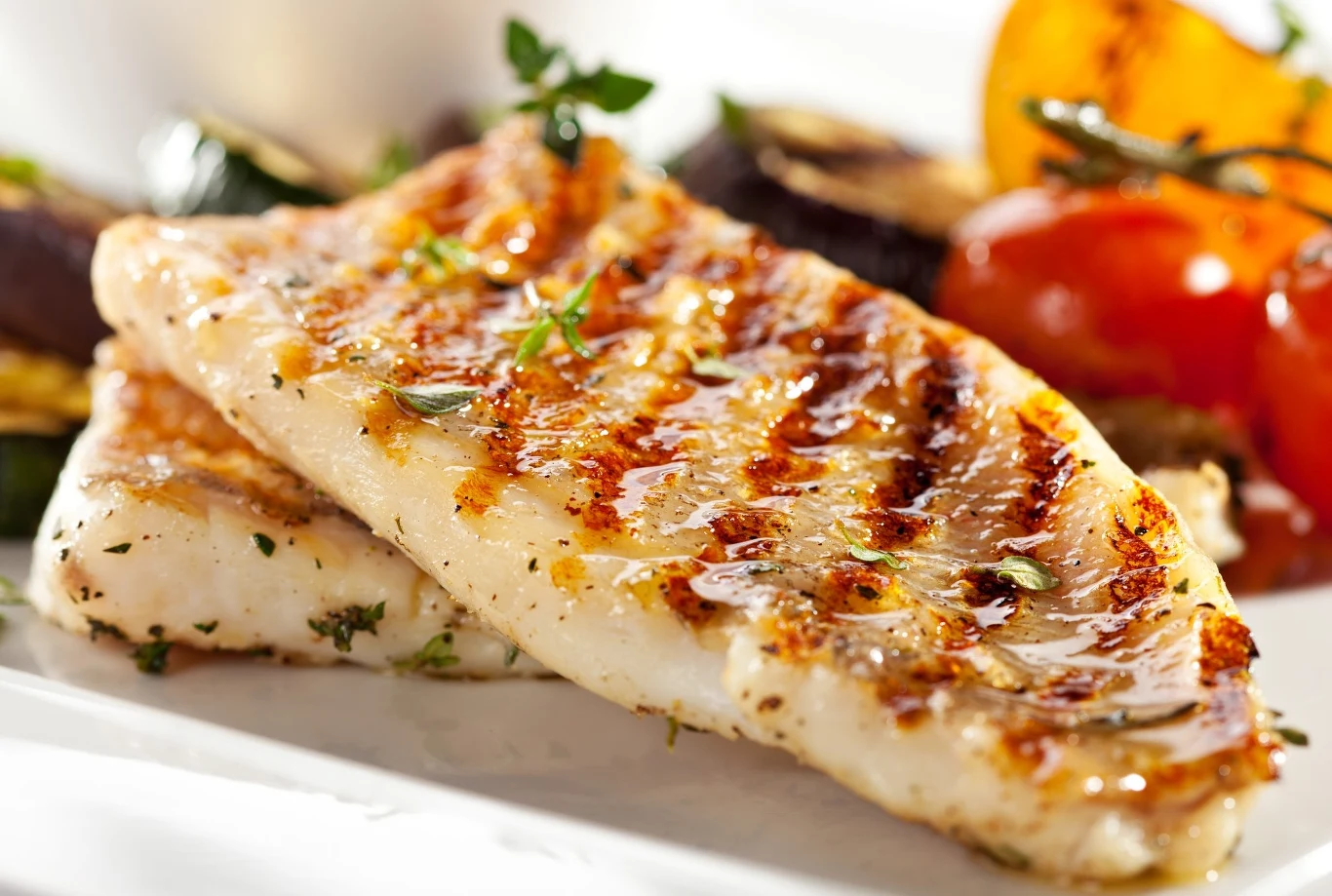 Sandacz z grilla doskonale smakuje z dodatkiem świeżych warzyw, posypany dodatkowo koperkiem czy natką pietruszki.