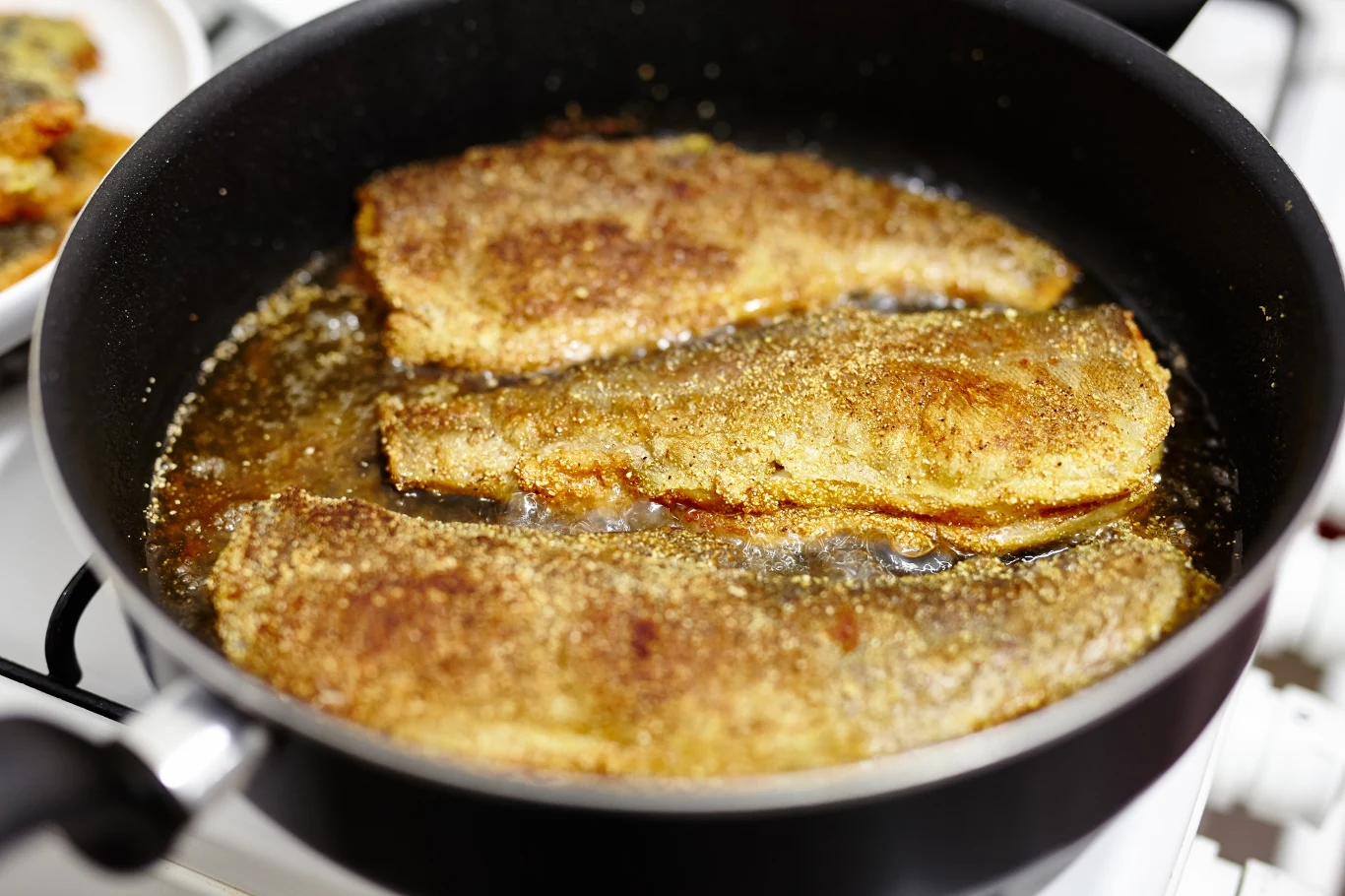 Podczas smażenia ryby można popełnić wiele błędów, które pomimo idealnie dobranego tłuszczu sprawią, że panierka straci swoją chrupkość lub się przysmaży.