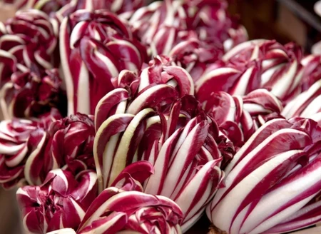 Radicchio, bordowa odmiana cykorii (Cichorium intybus var. foliosum), od lat przyciąga uwagę kucharzy i smakoszy swoim wyrazistym charakterem. Karminowe liście z delikatnymi, białymi żyłkami wyróżniają się smakiem który trudno pomylić z czymkolwiek innym — jest lekko gorzki, intensywny, ale niezwykle elegancki. Włosi uczynili z niego kulinarny znak rozpoznawczy, ponieważ sama historia radicchio sięga czasów starożytnego Rzymu. Współczesny kształt zawdzięczamy belgijskiemu ogrodnikowi Francesco Van Den Borre, który w XIX wieku udoskonalił technikę bielenia liści. To właśnie wtedy narodziły się kultowe odmiany z Treviso i Chioggii, dziś uznawane za jedne z najbardziej szlachetnych w Europie.