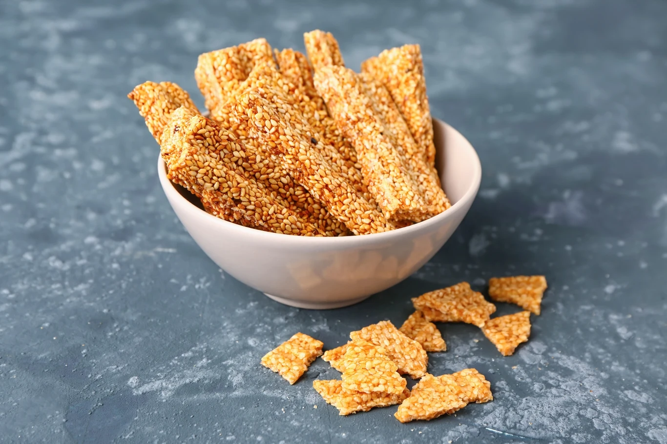 Sezamki to chrupiące batoniki z prażonych ziaren sezamu, sklejonych miodem lub syropem, które mogą stanowić zdrowszą alternatywę dla tradycyjnych słodyczy. Zamiast pustych kalorii i tłuszczów trans dostarczają minerałów niezbędnych dla kości, krwi i układu nerwowego. Nienasycone kwasy tłuszczowe (w tym omega-6) pomagają obniżać poziom cholesterole. Natomiast białko roślinne ze względu na zawartość metioniny i tryptofanu, wspomaga regenerację mięśni i równowagę psychiczną.