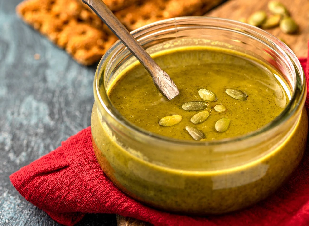 Masło z pestek dyni świetnie sprawdzi się jako dodatek do pieczywa, naleśników, korekty smakowej do owsianki lub jako baza dipu.