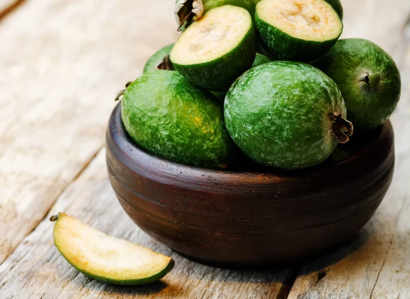 Owoce feijoa świetnie smakują samodzielnie jako przekąska w ciągu dnia, na deser czy między posiłkami. W kuchni wykorzystamy go do wzbogacenia owocowych smoothie, sałatek. Ozdobimy nim różne desery lub lody.
