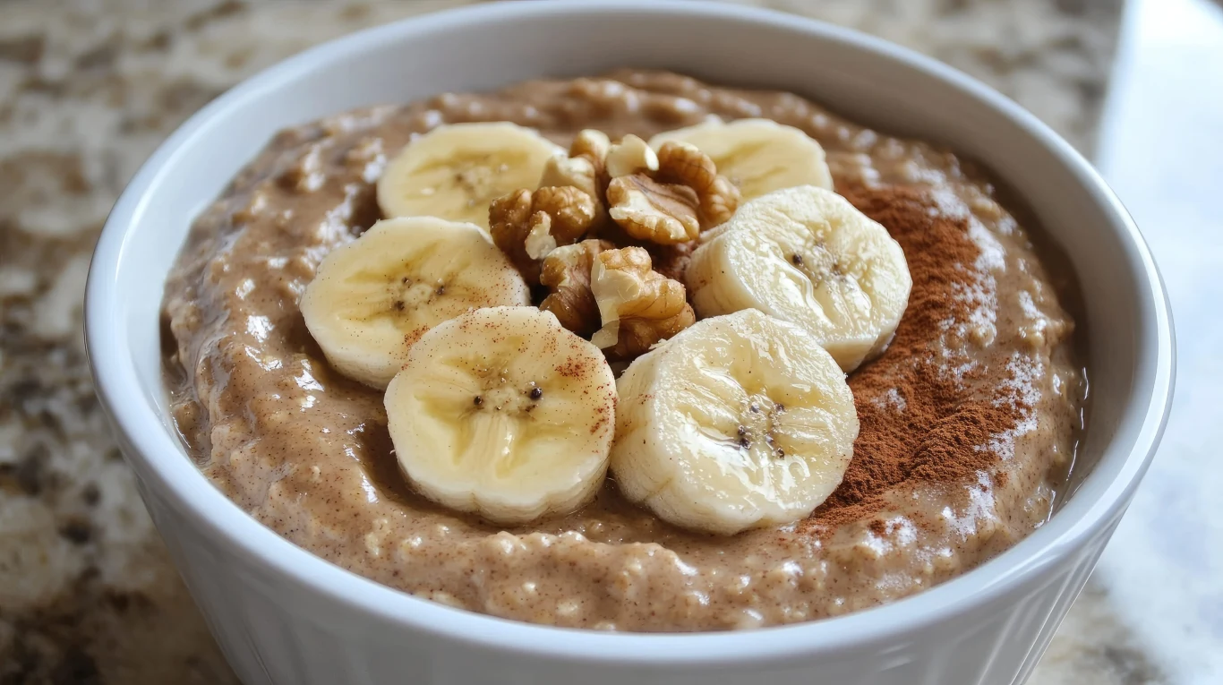 Jaglanka śniadaniowa z bananem, cynamonem i orzechami